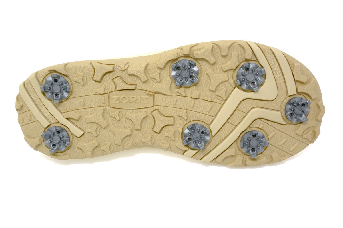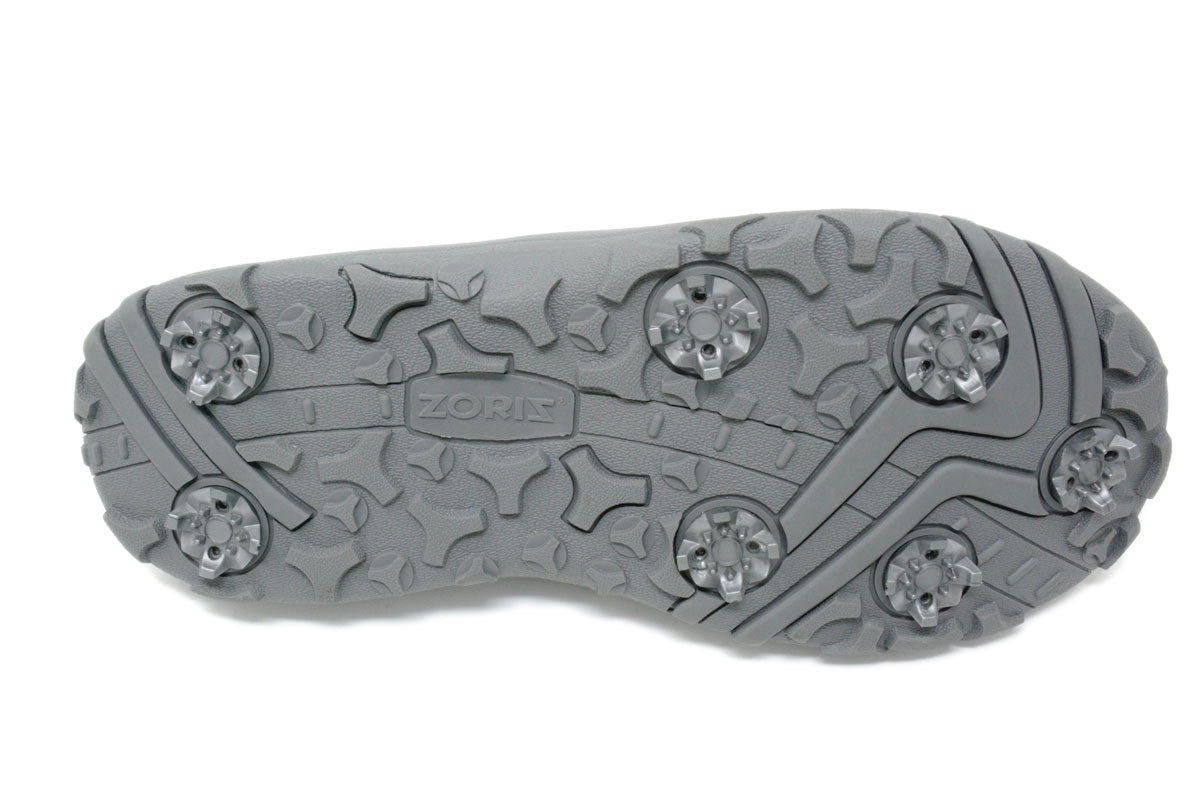 Swing into the next generation of ZORIZ Golf Sandals. The patented ZORIZ Next-Gen golf sandal is an innovative design built specifically with the golf swing in mind. The ZORIZ Next-Gen bolsters strengthened engineering with a softer EVA mid-sole that provides extra comfort and support. The patented heel has a deeper heel cup and higher sidewalls that help keep your foot in place during the golf swing. A contrasting out-sole consists of removable spikes. The thong style upper has a reinforced toe post designed to sit comfortably between your toes. The easy-care synthetic upper is padded with neoprene cushioning which holds your foot securely.