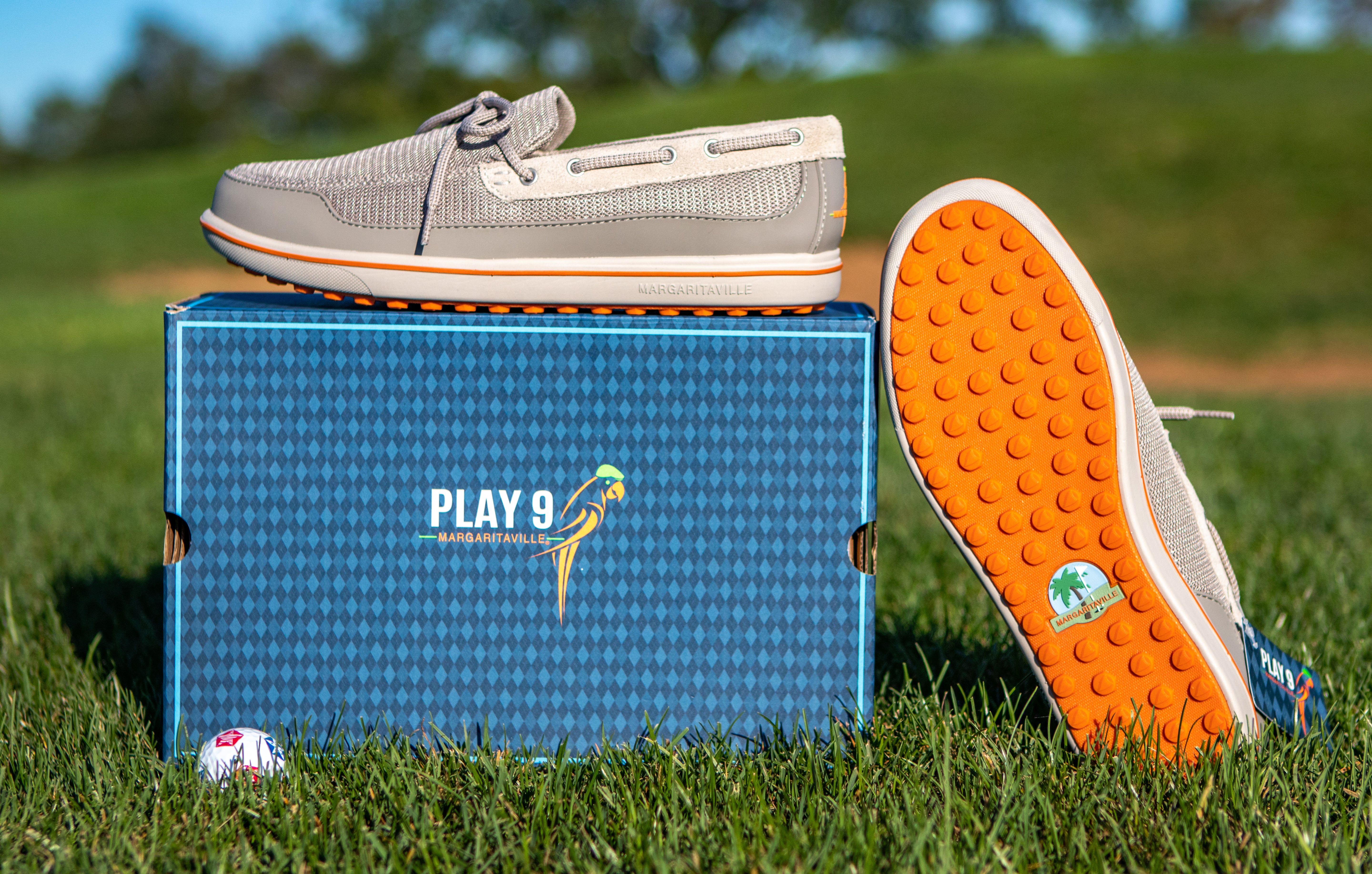 Slip into paradise in the Margaritaville® TAP IN golf shoe.  This lightweight, slip on golf shoe features a Flex/Fresh air mesh upper combined with a comfort lace system for a breathable, comfortable fit.  The stability heel frame sports a raised Margaritaville® golf logo combined with a rubber toe guard for follow-through support.  The outsole consists of flexible active/TRAK grip treads for maximum traction while the Sports Compression molded EVA midsole provides shock-absorbing active stability.  Easy on, easy off for golf or a license to chill.