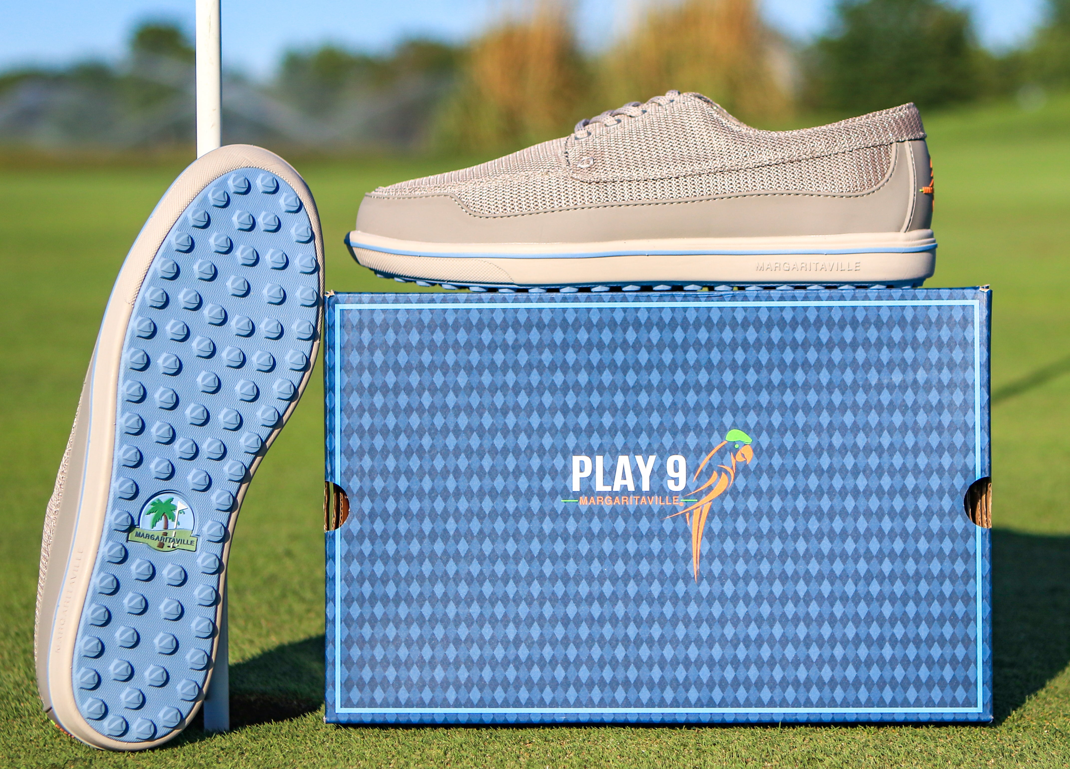 Get some island style in the Margaritaville® GIMMIE golf shoe. This lightweight, lace-up golf shoe features a Flex/Fresh air mesh upper combined with a comfort lace system for a breathable, comfortable fit. The stability heel frame sports a raised Margaritaville® golf logo combined with a rubber toe guard for follow-through support. The outsole consist of flexible active/TRAK grip treads for maximum traction while the Sports Compression molded EVA midsole provides shock-absorbing active stability. From the office to the course, to the 19th hole!