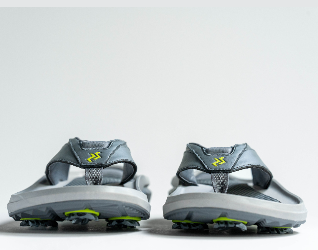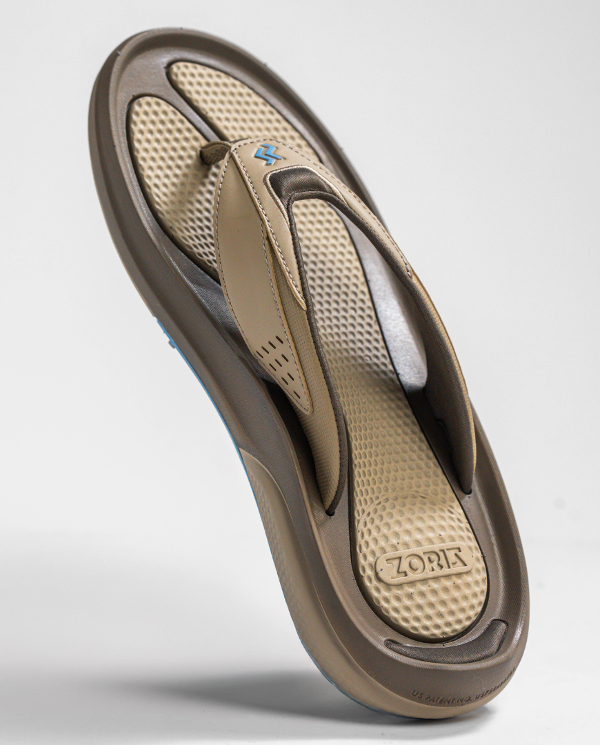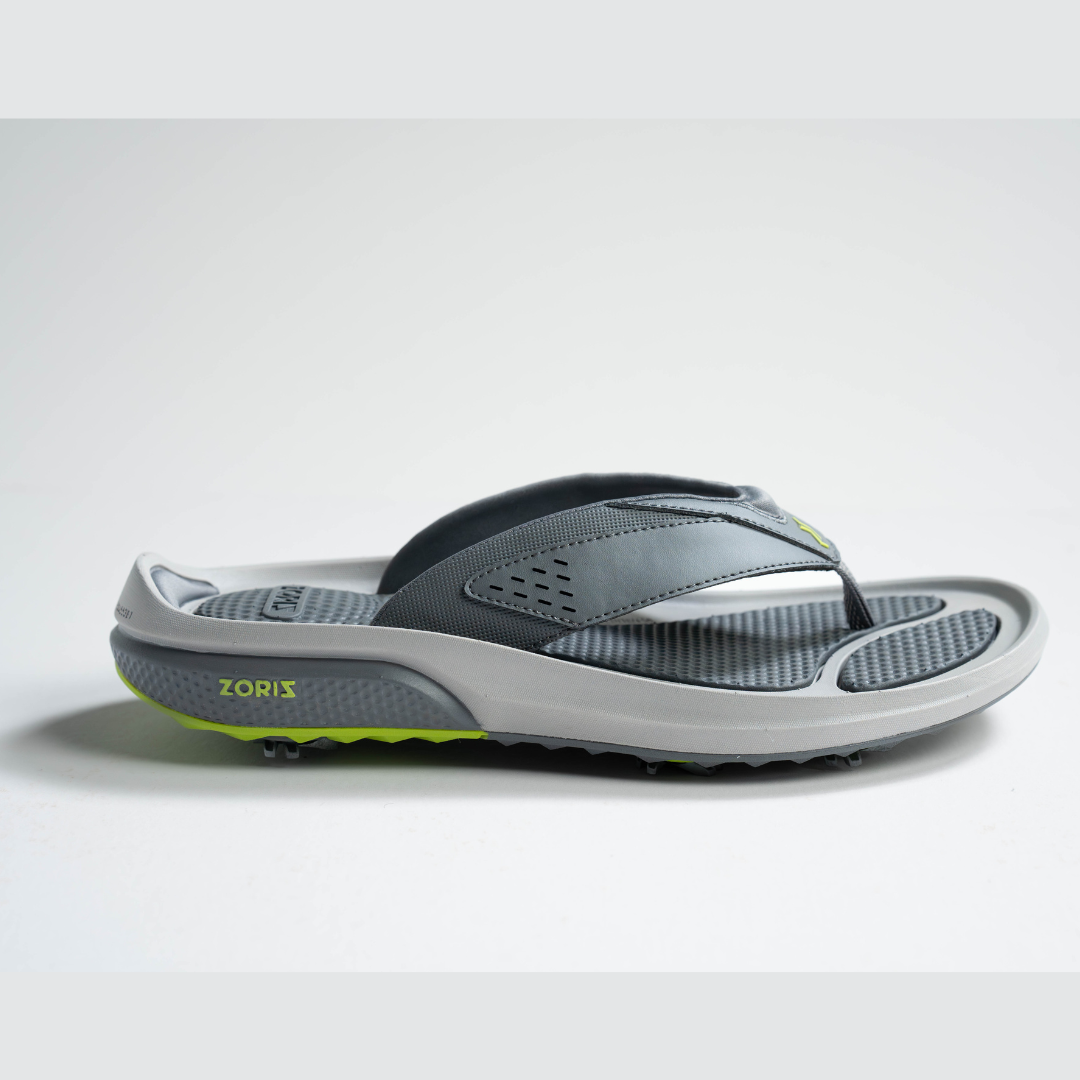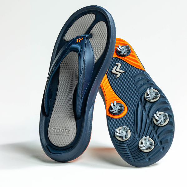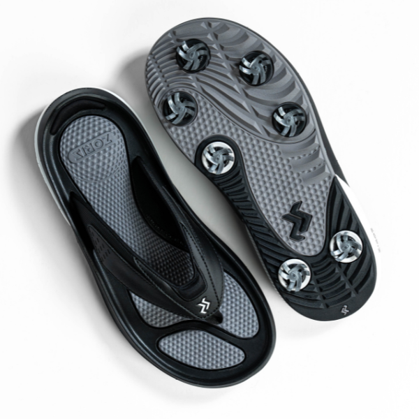 The patented ZORIZ Zoomy golf flip flop is built to withstand and enhance the lateral force, torque, and vertical force of the golf swing.