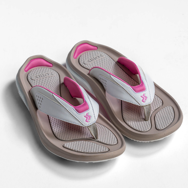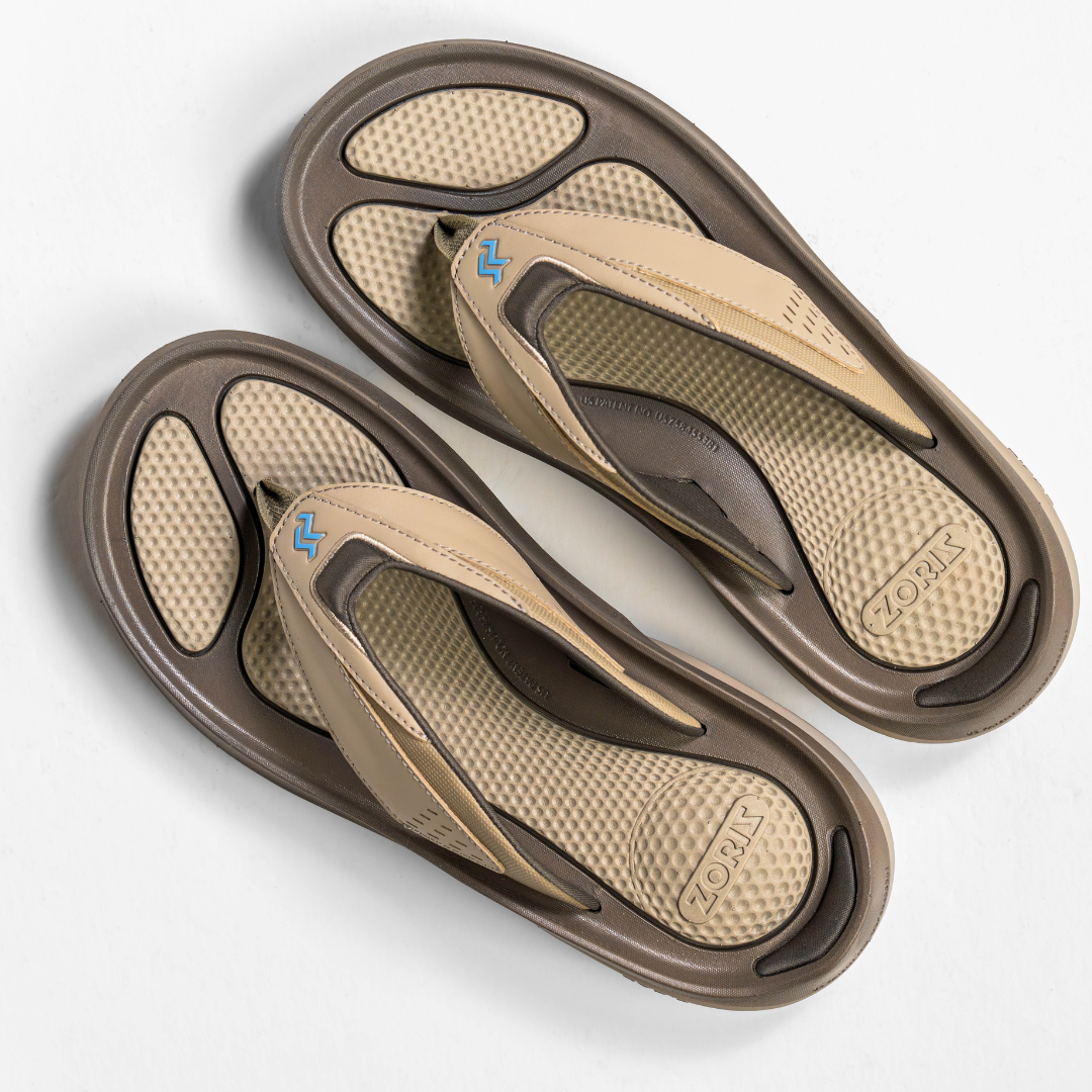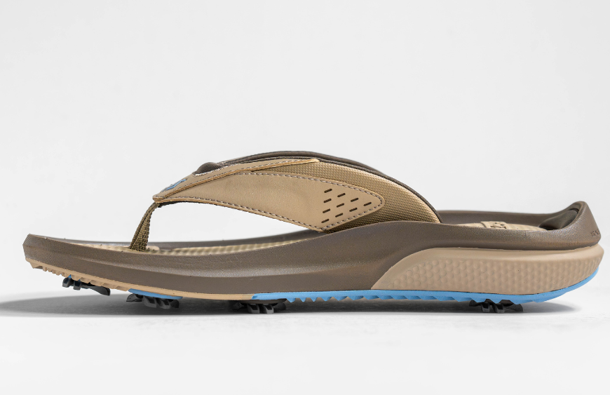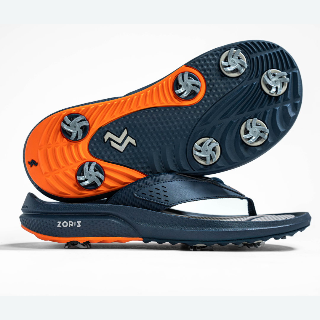 The patented ZORIZ Zoomy golf flip flop is built to withstand and enhance the lateral force, torque, and vertical force of the golf swing.